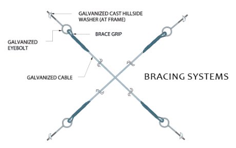 檩條、拉杆和支撐是用于支撐牆壁和屋頂覆層的次要結構構件。檩條、拉杆、柱支撐和水平支撐等次要構件連接主框架,有助于抵抗施加在建築物上的部分縱向荷載,例如風荷載和地震荷載。鋼檩條采用符合GB/T 2518-2008、Q235B/Q345B級或同等等級的優質鋼材,厚度為1.8毫米。厚度為 2.0 毫米、2.2 毫米、2.5 毫米和 3.0 毫米。檩條配有鍍鋅闆。柱支撐是相鄰兩柱之間設置的連接構件,保證建築結構的整體穩定性,提高側向剛度,傳遞縱向水平力。柱支撐根據建築需要采用圓鋼或角鋼。