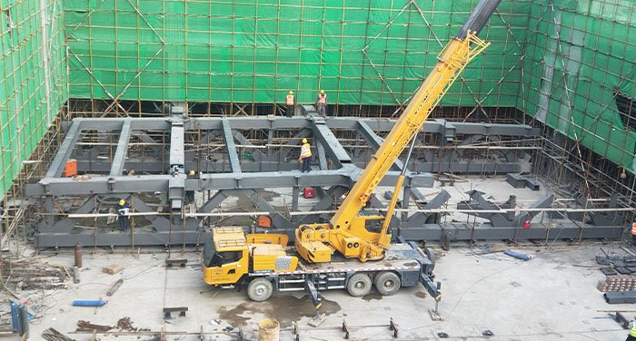工程概況:2019年建設,箱體鋼桁架結構,現場焊接拼裝,整體提升起吊,桁架用鋼量1900噸左右。