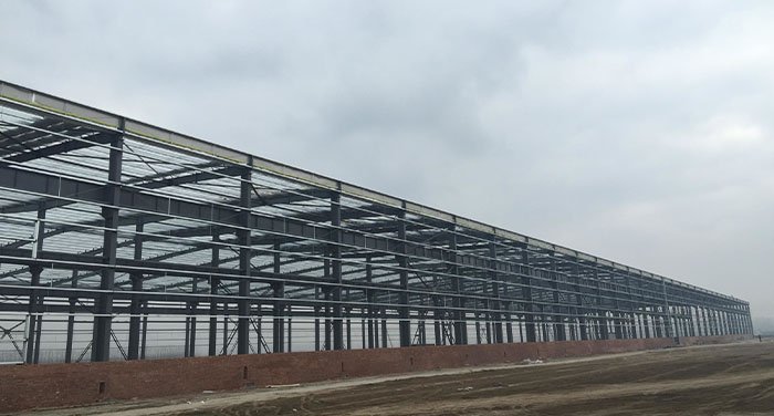 工程概況:2016年建設,建築面積21200平方,檐口高度14.8米,用鋼量1330噸,帶多台20噸/50噸橋式行吊。