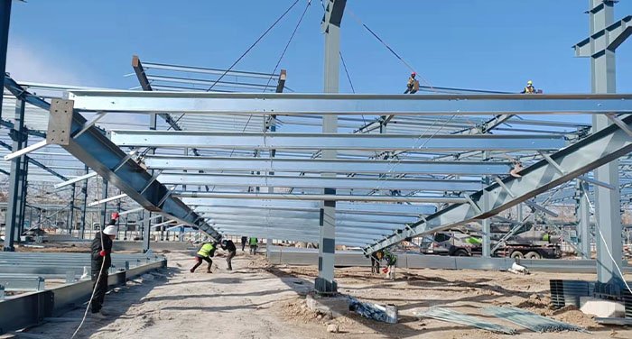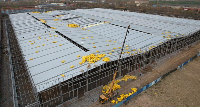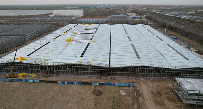 工程概況:在建工程,建築面積48700平方,檐口高度12米,16噸行車,聚氨酯橫挂複合闆牆面。