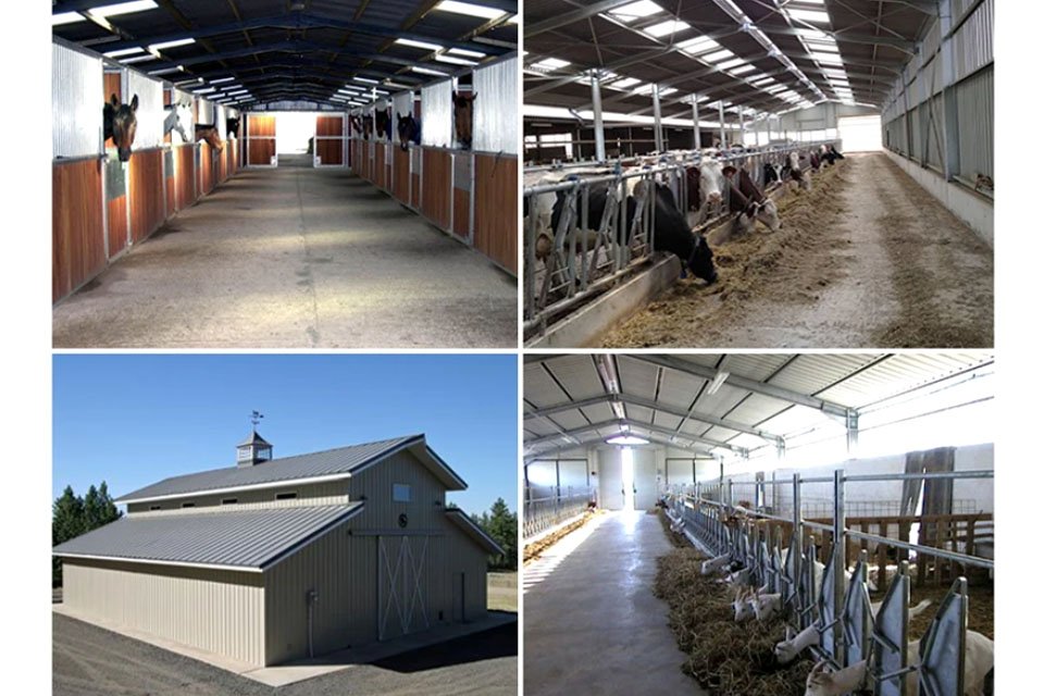 在現代奶牛場中,鋼結構奶牛場建築被廣泛使用。我們為您的奶牛提供絕對最好的保護建築。我們可以根據您的要求建造任何規模的奶牛場建築。還可以創建一些額外的空間用于存儲和維修或維護。建築物的框架由H型鋼柱、H型鋼梁和C型或Z型鋼檩條組成,結構堅固,足以抵禦強風和大雪,充分保護您的奶牛。牛舍有兩種:開放式和封閉式,這取決于您當地的氣候和您的要求。