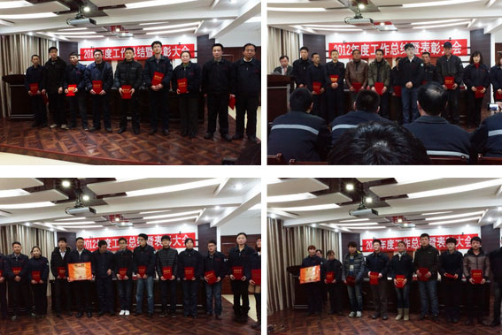 会上,公司董事会秘书、企管部部长李娇云对2012年年度表彰活动进行了说明,详细介绍了此次年度评优办法及评选项目,并宣布了最终评优结果及奖项。公司2012年度共有13大奖项,其中安全生产奖1名,最佳质量奖7名,创新奖5名,合理化建议奖4名,进步奖7名,新秀奖7名,老黄牛奖8名,全年满勤奖10名,优秀工作者16名,优秀团队3组,特殊贡献奖1名,优秀班组长2名,优秀中层干部2名。为了对2012年度获奖人员进行奖励,会议现场对所有获奖者进行了表彰,颁发了奖励证书、奖状和奖金。