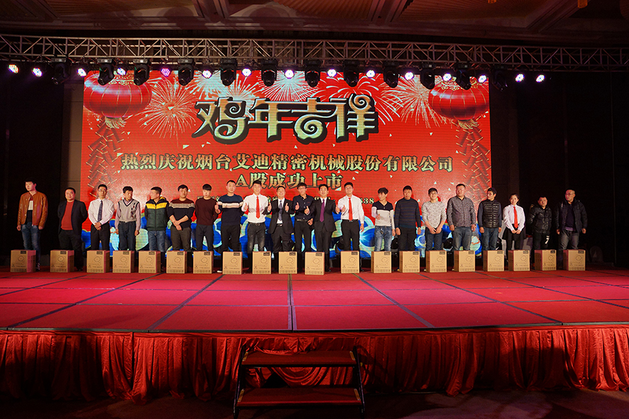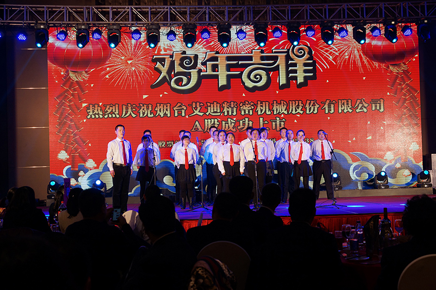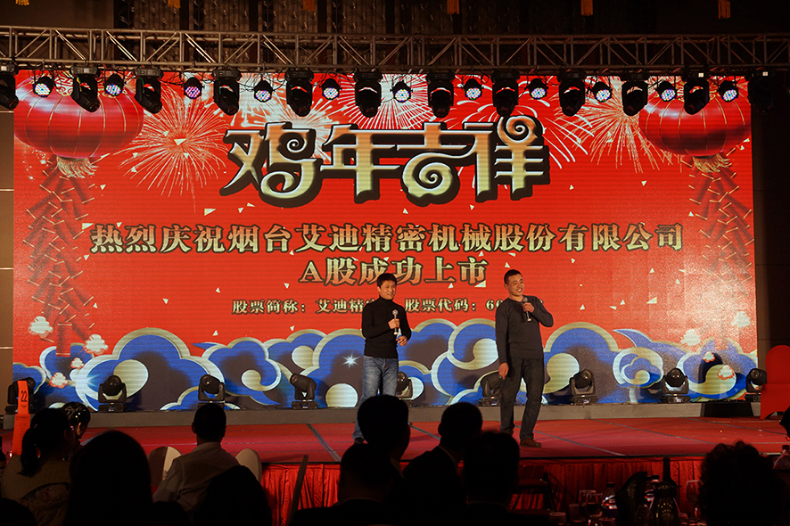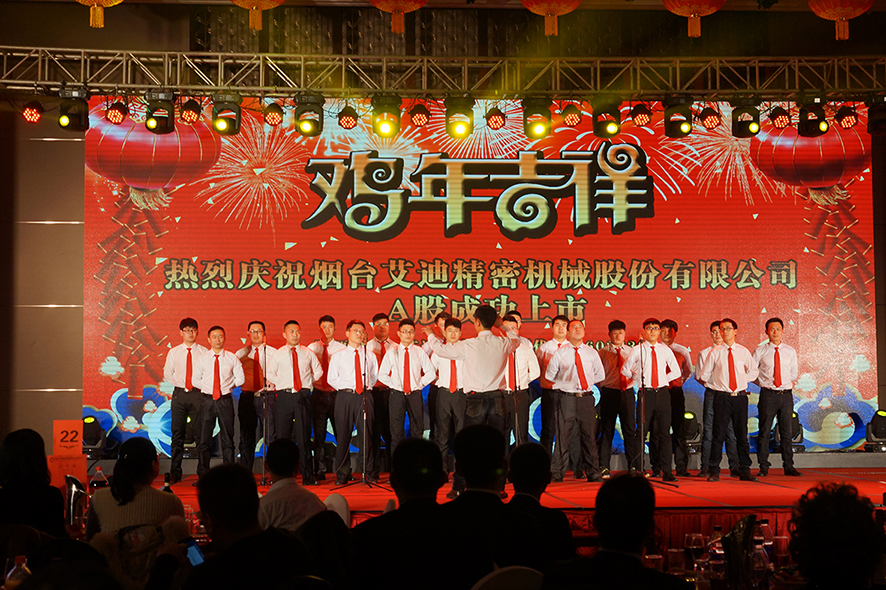 2017年1月20日,公司首次公开发行A股上市仪式在上海证券交易所隆重举行,标志着艾迪精密正式迈入中国资本市场。公司成功上市为2017年开创了一个崭新的开端,而本届年会在公司上市成功的氛围下开幕,既是共同庆贺公司上市,更是充满着对公司蓬勃发展,迎接美好未来的期许,为喜庆的节日增添了别样的风采。在热烈掌声中艾迪员工自导自演的新年联欢会拉开序幕。红鼓、舞蹈、合唱、相声、双簧、独唱等员工们精心准备的节目别有一番韵味。文艺演出、别样表彰与幸运抽奖环环相扣,整场晚会精彩纷呈,既展现了员工们的多才多艺,又彰显了艾迪大家庭的凝聚力,这是属于艾迪全体员工的幸福与温馨。