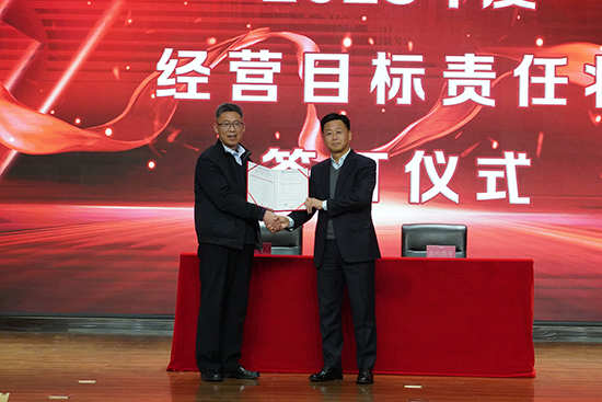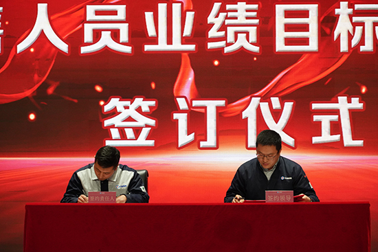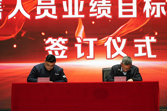 大会进行第一项,公司与各子公司的高管团队签订经营目标责任状,艾迪高管团队依次上台与董事长进行签约。