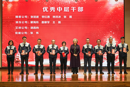 大会开始,由公司高层领导为在2022年度先进评选工作中获得各项荣誉称号的先进个人颁奖。本次大会共设立英才奖、优秀员工、优秀基层干部、优秀中层干部、技术进步奖、工艺创新奖、销售精英、服务精英、生产标兵、质量管理标兵、智能制造标兵、后勤保障奖、抗疫贡献奖13个奖项,表彰先进个人196名,鼓励他们继续发挥模范带头作用,为公司的发展贡献力量。