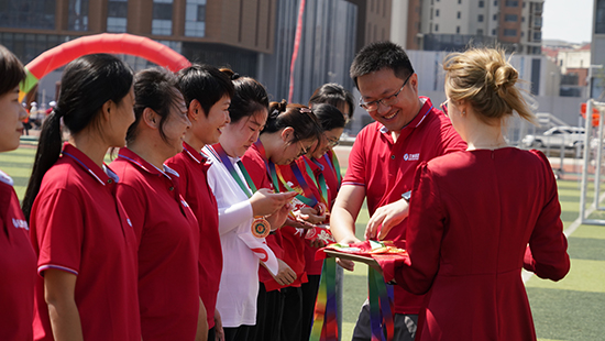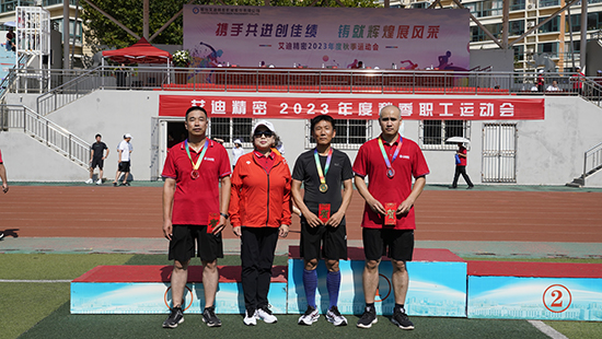 艾迪精密副总经理宋鸥宣读运动会比赛结果,艾创/锐能公司、精密公司、液压公司分别获得团体积分第一、二、三名;精密机加/磨床代表队、液压铸造车间代表队、马达事业部二队获得优秀方队奖项。