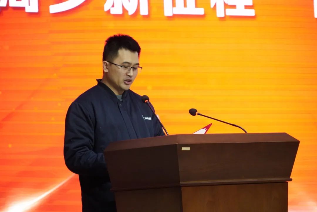 颁奖过后,优秀基层干部代表栾景坤、降本增效突出贡献奖代表邵明昊上台发言。