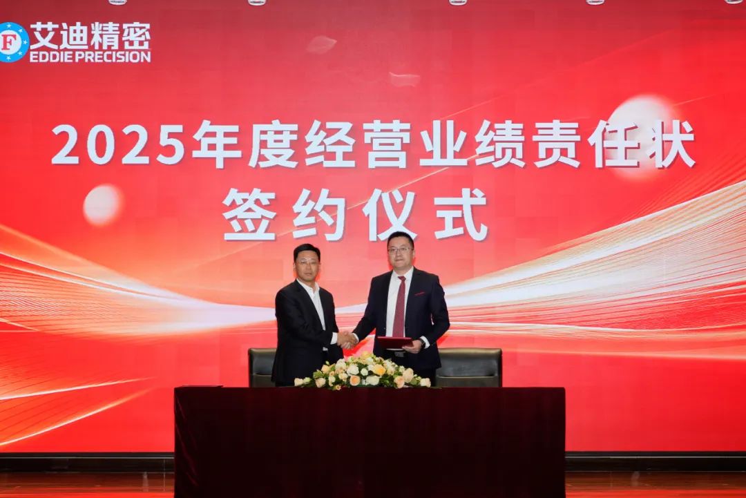 董事长与各事业部高层管理人员签订2025年度经营业绩责任状,许下使命必达的庄重承诺,助力公司稳步达成发展目标。