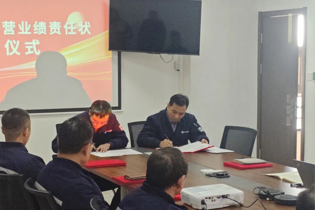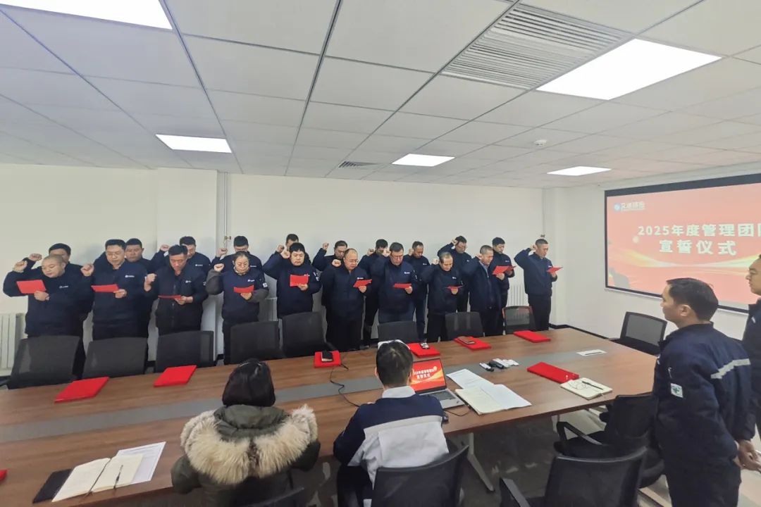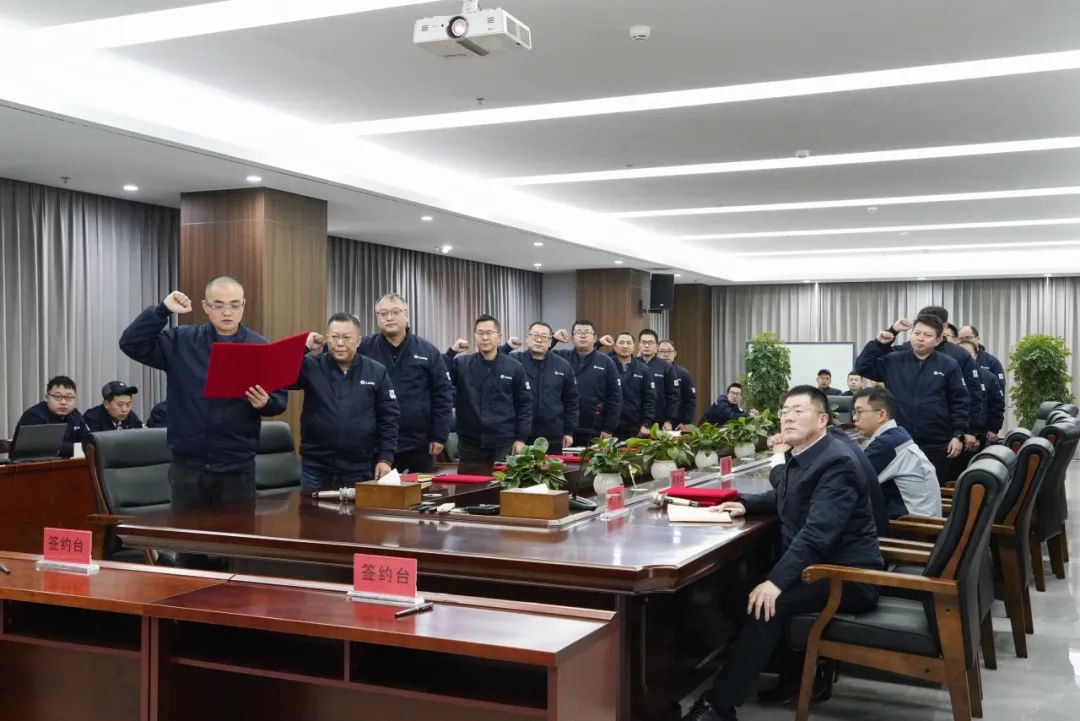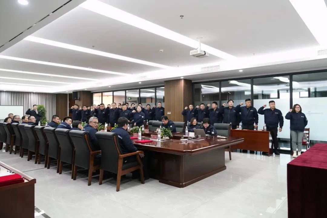 随后宣誓环节,全体人员精神饱满、誓言嘹亮。铿锵有力的声音表达了对实现经营目标的坚定信念,承诺将全力以赴,积极应对挑战,为推动公司发展贡献力量。