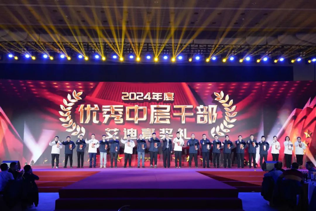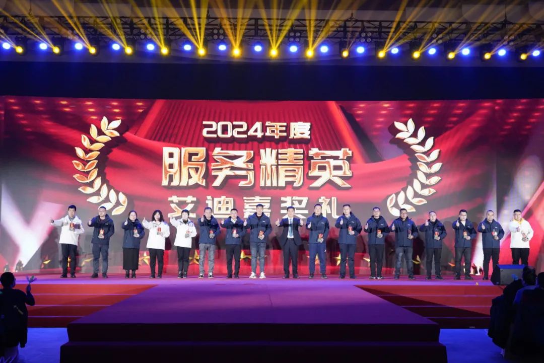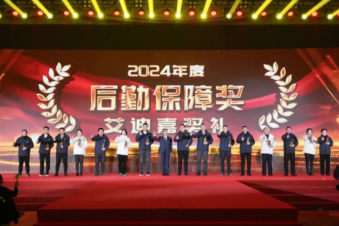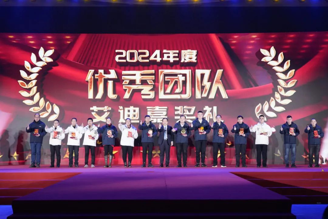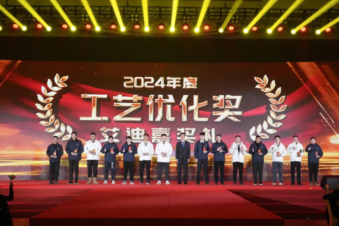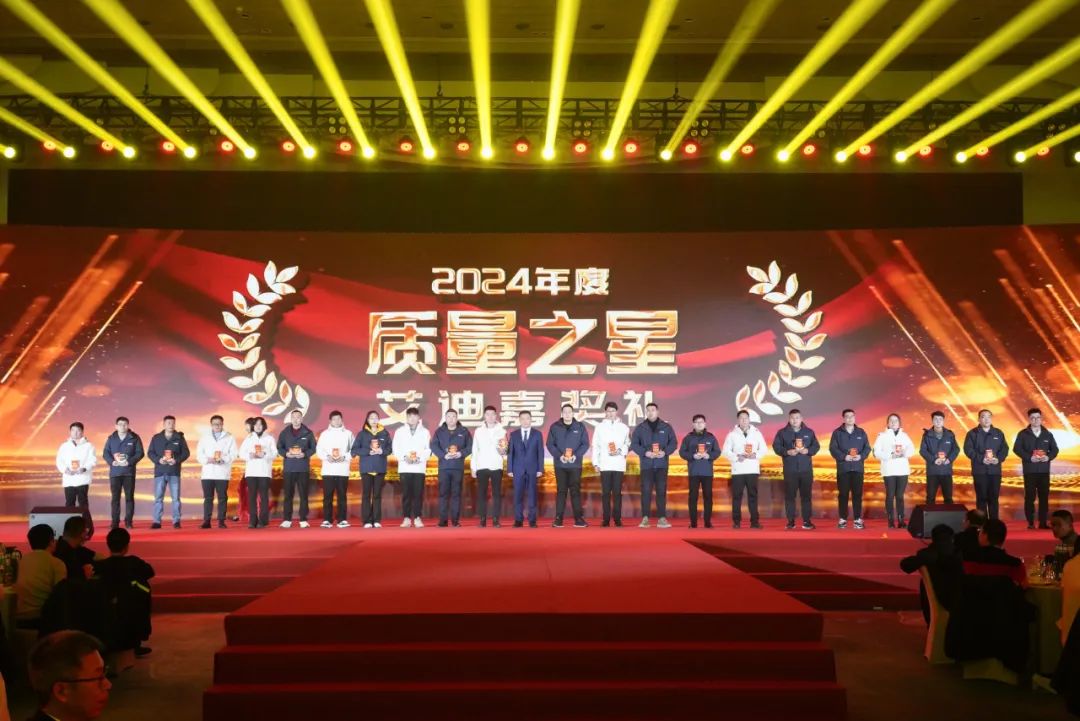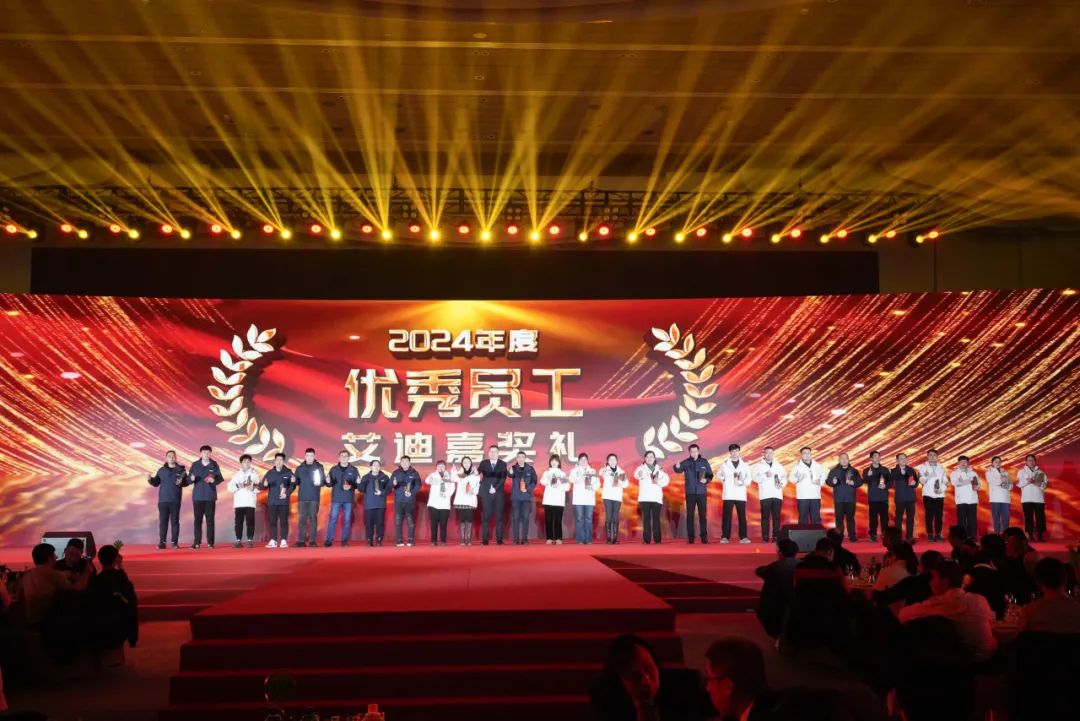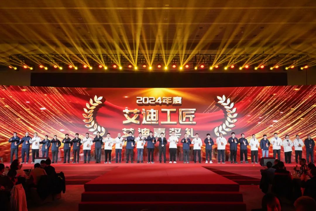 年会的颁奖环节熠熠生辉,众多优秀个人与团队迎来了属于他们的高光时刻。本次年会盛典设立“质量之星”、“安全之星”、“降本之星”、“后勤保障奖”、“优秀新人”、“优秀员工”、“艾迪工匠”、“技术创新奖”、“工艺优化奖”、“品牌推广奖”、“销售精英”、“服务精英”、“优秀团队”、“优秀基层干部”、“优秀中层干部”、“最佳合作奖“、“杰出贡献奖”17个奖项,共307名获奖者上台领奖。
